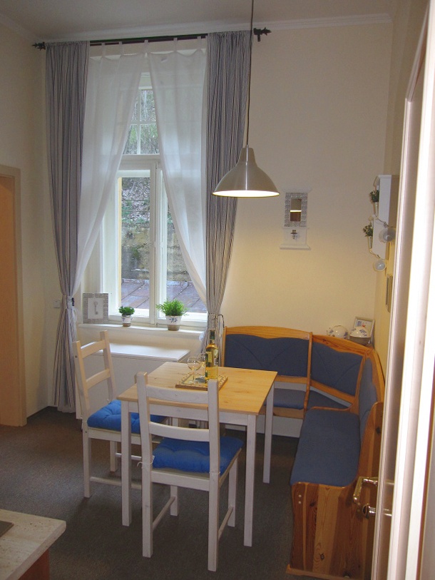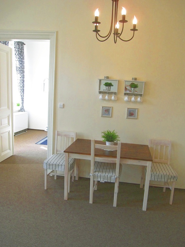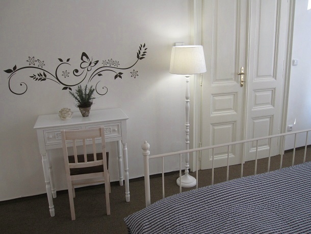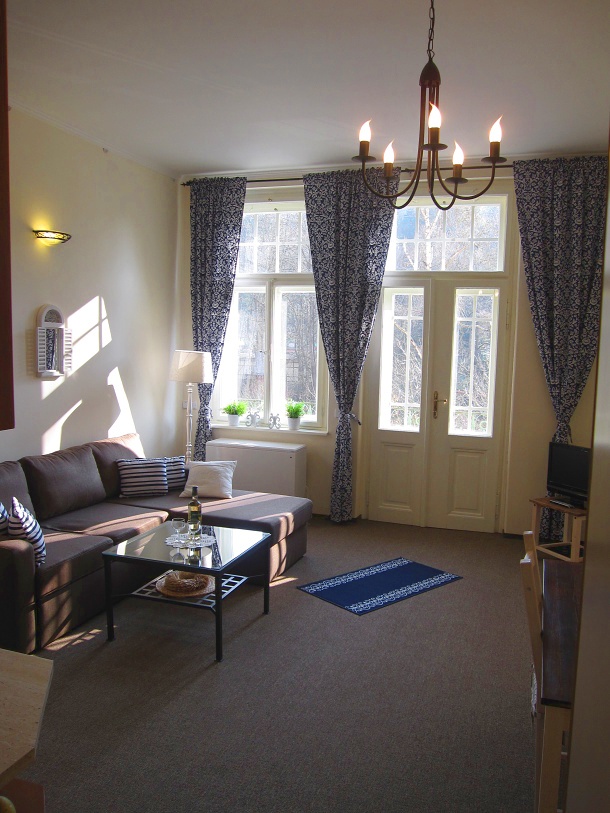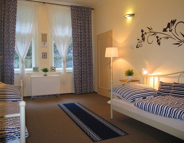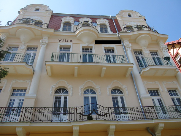 Вилла предлагает к размещению два апартамента, большой – до 5 человек, малый – до 3 человек. Апартаменты класса «Люкс» расположены в центре Марианских Лазней, в 10 минутах ходьбы пешком до Главной колоннады. Рядом расположен большой парк, переходящий в лес, Лесной источник, теннисные корты, лановый (альпинистский) центр.