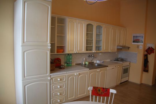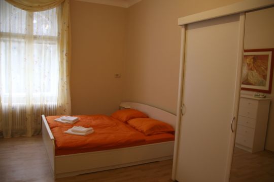 Апартамент находится в центральной курортной части Марианских Лазней, на Английской улице, в 150 метрах от санатория "Новые Лазни"(*****) и в 50-ти метрах от санатория "Влтава"(****). Апартамент, площадью 83 кв.м., расположен на 3 этаже(4-х этажного дома), полностью меблирован. Гостиная (28 кв.м.) - комплект мягкой мебели, односпальная кровать, полки, ЖК-телевизор с кабельными каналами(русских каналов нет). Спальня (18 кв.м.) - двуспальная кровать, детская кроватка, шкаф-купе, комод, стеллаж. Кухня-столовая(20 кв.м) - кухонная мебель, эл.плита, холодильник, посудомоечная машина, микроволновая печь, чайник, тостер, утюг, посуда, и т. д. Ванная комната с ванной, душем, WC и стиральной машиной. Бесплатный ,быстрый Wi-Fi. Автономная система отопления. Максимальная вместимость 3+1 (дополнительная складная кровать входит в стоимость)+1 ребенок до 2 лет. В 100 метрах платная парковка по предварительному заказу за символическую цену - 60 крон в сутки. В соседнем доме расположен ресторан "У Чарли", в котором вы можете вкусно покушать, как утром, так и вечером. Можно заказать полный пансион.