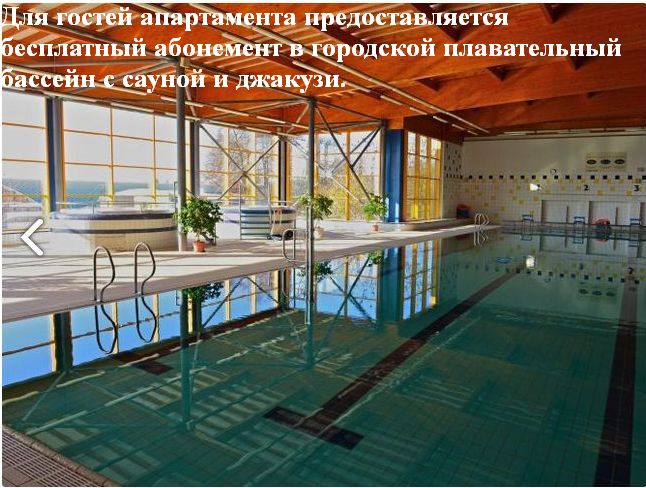 Весной и осенью гостям апартамента бесплатно предоставляется абонемент на посещение городского бассейна с сауной и джакузи.